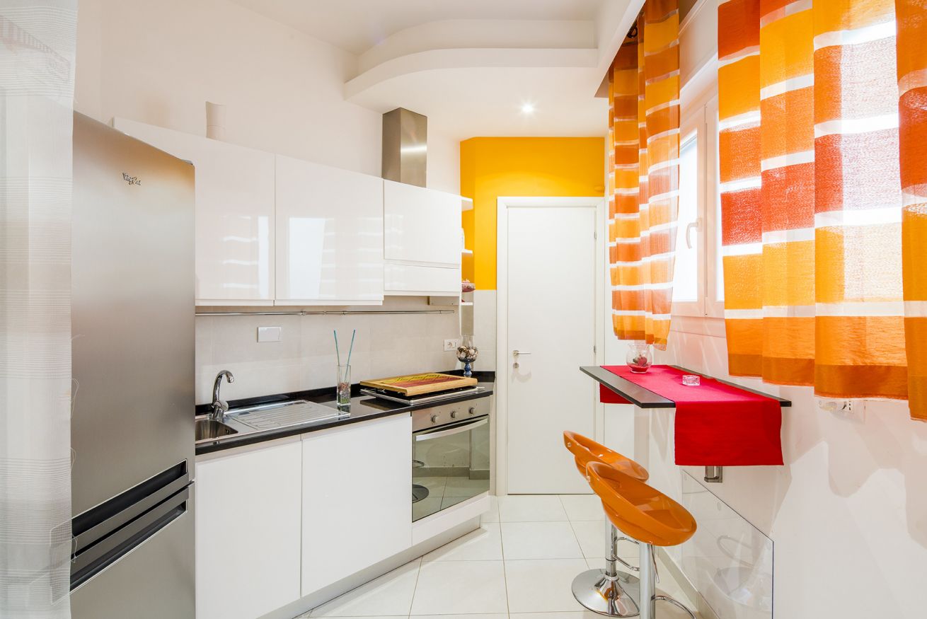 La cucina è abitabile e completamente attrezzata con elettrodomestici, pentole, stoviglie e tutti gli accessori necessari per preparare i vostri pasti come a casa.