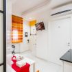 L’alloggio dispone di un letto matrimoniale e di un comodo divano letto, accogliendo fino a 4 ospiti. La dotazione comprende un ampio armadio, una pratica scrivania, comodini e un mini-frigorifero.
